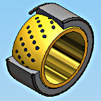 Outer ring of carbon steel, phosphated, radially split twice, held together by screws, sliding surface treated with hard chromium plating. Inner ring of copper alloy and sliding surface inserted with solid lubricant.